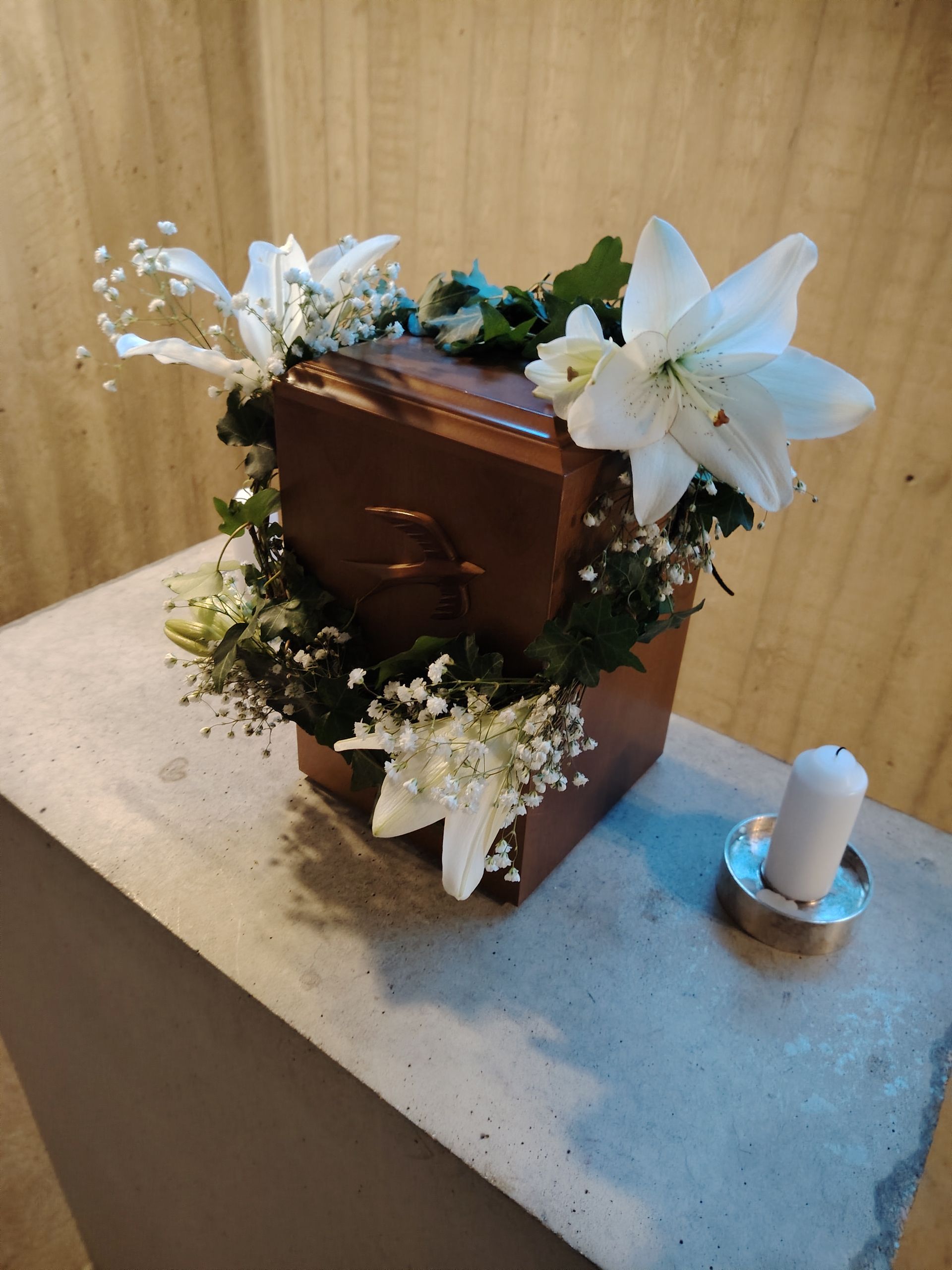 Siunaustilaisuudessa arkulla on yleensä kukkalaite. Vaihtoehtoisesti se voi olla myös kimppu.